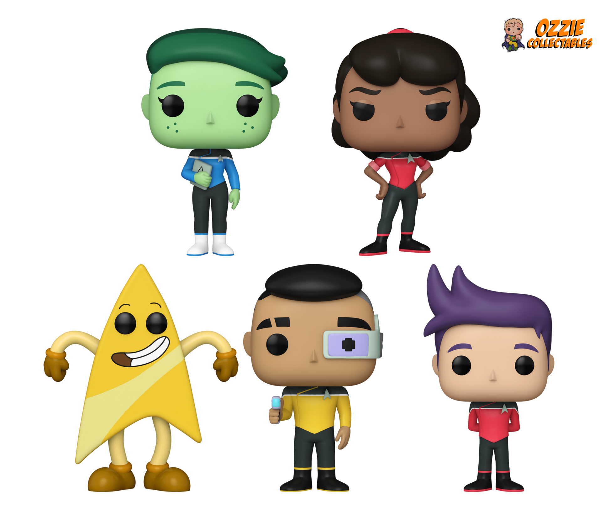 Introducing the ultimate Star Trek: Lower Decks Bundle, a must-have for all trekkies! This exclusive collection includes 5 meticulously crafted POP! Vinyl figures showcasing the beloved characters from the hit animated series. Dive into the zany adventures of the U.S.S. Cerritos crew with the vibrant D'Vana Tendi, the spirited Beckett Mariner, the mischievous Badgey, the ever-reliable Samanthan Rutherford, and the earnest Bradward Boimler. From their distinctive uniforms to their dynamic expressions, each figure captures the essence of these endearing characters, making this bundle a delightful addition to any Star Trek collectables collection. Engage in the whimsical world of Lower Decks with this charming ensemble!