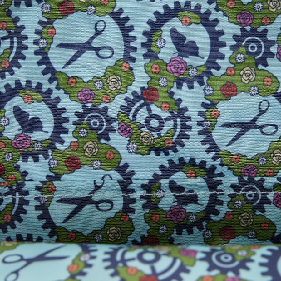 Calling all fans of Edward Scissorhands! This mini backpack is for you! On the front, you'll find Edward Scissorhands holding a heart-shaped shrub with roses on it. It opens up to reveal an image of Kim. The rest of the bag features green sherpa to embody the hedge, and you'll find fence details on the side pockets. The straps also feature safety pin details! It' s a really fun bag to show off one of your favorite movies! Features - Faux leather (polyurethane) - Sturdy top handle - Adjustable shoulder straps - Applique, debossed, embroidered, sherpa, and printed details - Coordinating interior lining Dimensions: - 9"W x 10.5"H x 4.5"D - 22.8cm W x 26.6cm H x 11.4cm D This is an officially licensed Twentieth Century Studios product.