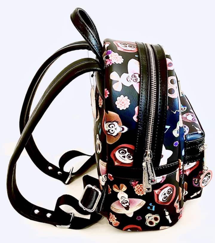 Pack your essentials in this fantastic bag as you head towards The Land of the Dead with Miguel & his family! Inspired by the Disney Pixar masterpiece "Coco", this colourful mini backpack features all over print (AOP) artwork of all your favourite characters dressed up for Dia de los Muertos, as well as the classic Loungefly double zip fastenings and enamel logo. Finally, see if you can spot the hidden Mickey!
