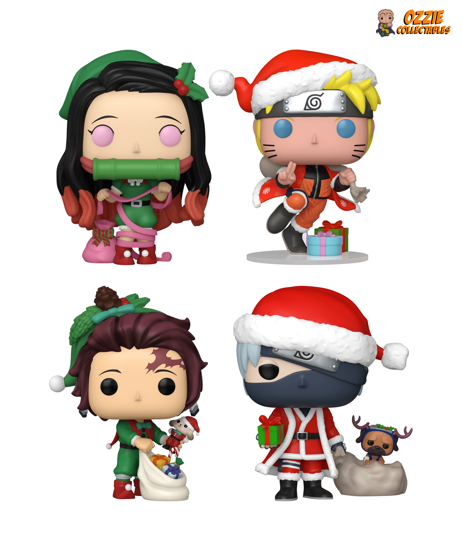 Bring some festive cheer to your anime collection with the Anime Holiday 2025 Bundle, a delightful set of 4 POP! Vinyls featuring beloved characters from Naruto and Demon Slayer in charming holiday attire. This bundle includes Nezuko and Tanjiro Kamado spreading seasonal joy, alongside Naruto Uzumaki and Kakashi Hatake with Pakkun looking merry and bright. Perfect for collectors and anime fans alike, this limited seasonal collection adds a fun and festive twist to your favourite heroes – and makes a brilliant holiday gift!