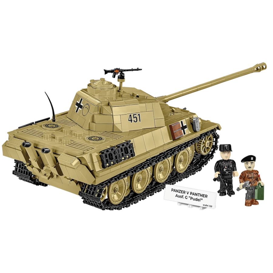 Build the Panzer V PANTHER Ausf.G "Pudel" from COBI step by step and feel how this legendary vehicle comes to life in your hands! By constructing this tank you can create an impressive model that will delight every block lover, collector and history enthusiast. The Panzer V PANTHER Ausf.G is one of the most important German tanks of World War II, and its "Pudel" version gained special significance in Polish history, when the tank was captured by the Warsaw insurgents in August 1944. The model is equipped with a movable gun, an opening hatch and a rotating and removable turret tank, which provides exceptional realism and allows for creative play. Realistic construction - The set includes a removable Maybach HL-230 engine, which can be displayed next to the model. The set contains detailed reproduction of machine guns and tracks, which are inspired by authentic equipment from World War II and make the model exceptionally realistic. Two figures - a German tankman and a Pole Jan Uniewski, pseudonym "Lumenski" - who manned the captured tank during the Warsaw Uprising, add a unique historical context. The tank received the nickname "Pudel" in honor of officer Tadeusz Tyczynski, who died during the fighting, and the model pays tribute to those who fought for the freedom of Poland. Thanks to the detailed instructions, building the tank is simple and enjoyable, and high-quality COBI blocks guarantee precise fit and durability of the model. Perfectly profiled elements make connecting the blocks easy and enjoyable, and the final effect gives great satisfaction from making a precise, historical model. The model has Polish national emblems, such as the symbol of Fighting Poland and the Scout lily. The possibility of exchanging them for German emblems gives you full freedom in customizing the model. Check out other vehicles from the HISTORICAL COLLECTION World War II series and create your own, unique collection of historical machines! Features; - 1133 high-quality elements - Manufactured in the EU by a company with over 35 years of tradition - The blocks meet the safety standards of products for children - Fully compatible with other brands of construction blocks - Blocks with prints do not scratch or smear and do not fade during play or under the influence of temperature - Clear and intuitive instructions based on illustrations and step-by-step directions - 2 figures: a Polish mechanic and a German tankman Model dimensions: 32 cm x 12 cm x 12 cm