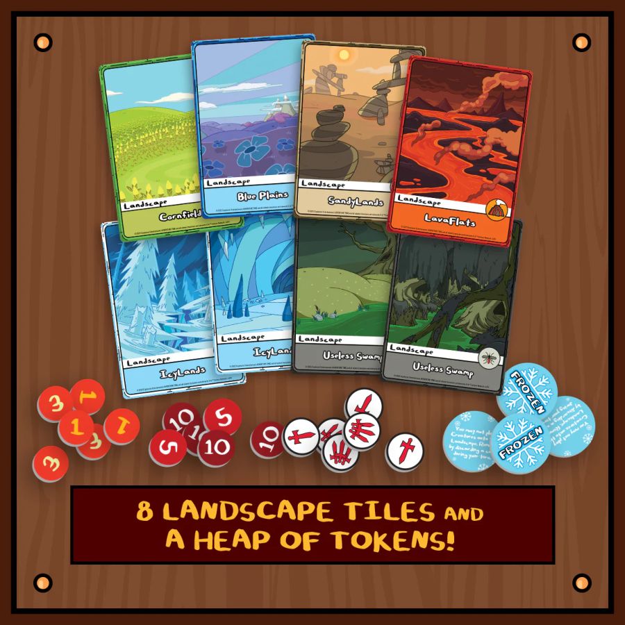 SHMOWZOW! Go for broke with different lands or coldly make someone lose their hand with this Adventure Time Card Wars set! Get combos from playing with Landscape types using Prismo's SandyLands/Blue Plains/Cornfield/LavaFlats deck or freeze out your opponent with discards using The Lich's Useless Swamp/IcyLands deck! Standalone game that is compatible with other products in the Adventure Time Card Wars series. KEY FEATURES Inspired by the "Card Wars" episodes of Cartoon Network’s Adventure Time Fast Paced 1v1 gameplay Play as Heroes Prismo and The Lich with themed decks featuring original art! Action takes place across four Lanes with each player using Spells, Creatures, and Buildings CONTENTS 2x 40 Card Decks (80 Cards Total) 8 Landscape Tiles (1 Cornfield, 1 LavaFlats, 1 Blue Plains, 1 SandyLands, 2 Useless Swamp, 2 IcyLands) 2 Oversized Hero Cards 1 Generic HP Tracker 3 Hero Tokens 15 Attack Tokens 5 Frozen Tokens Lots of Hit Point Tokens 1 Rulebook Number of Players: 2 For Ages: 14+ Playing Time: 30 Minutes