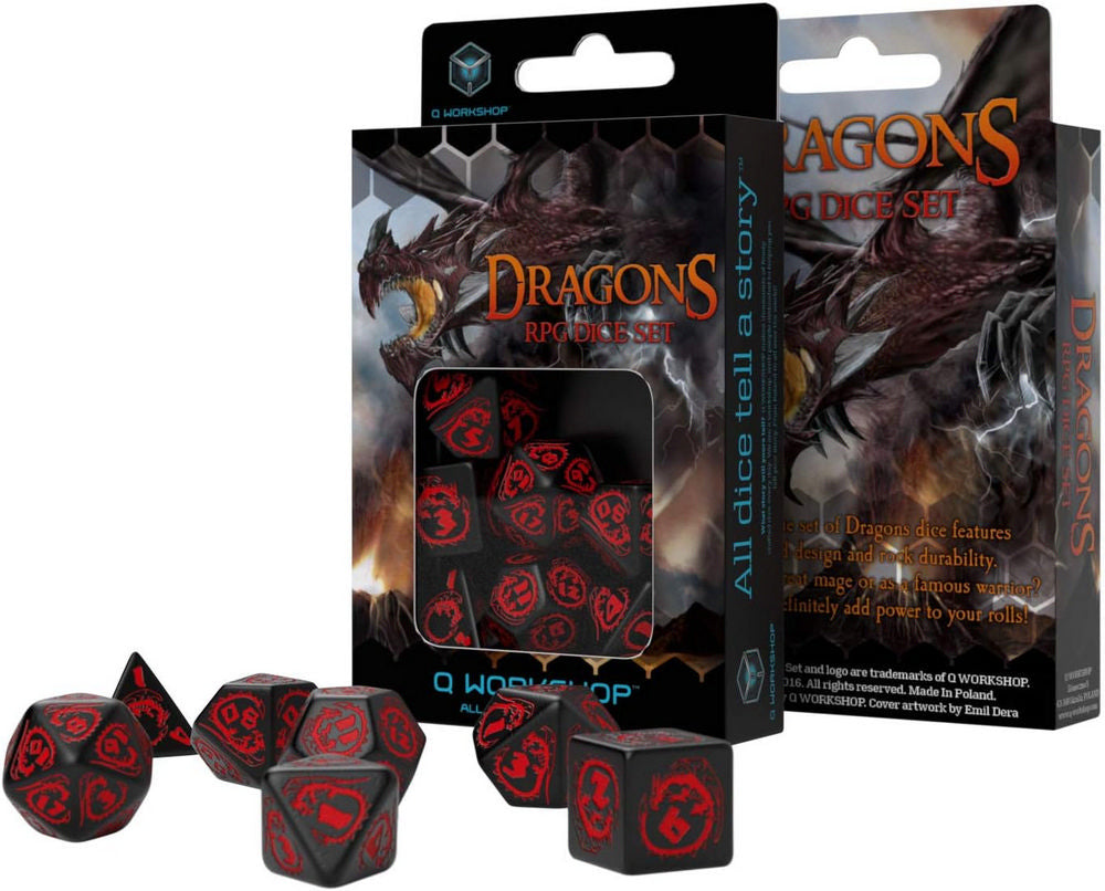 Q Workshop: Dragons Black & Red 7 Dice Set