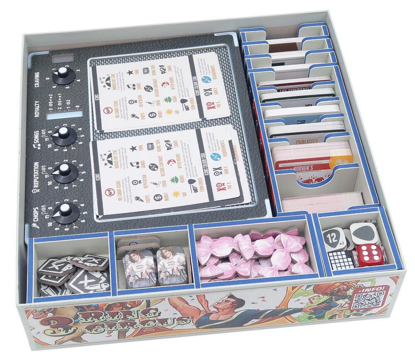 The full colour print really brings the trays to life, tying them in with the theme of the game and making it easier to see which components go where.