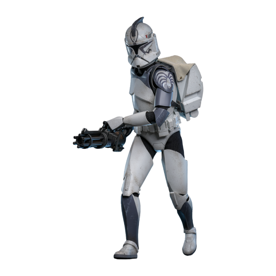 "We're just clones sir, we're meant to be expendable." "Not to me." - Plo Koon Commanded by Jedi General Plo Koon and Clone Commander Wolffe, the 104th Battalion, known as the "Wolf Pack" Battalion, was a clone trooper unit in the Grand Army of the Republic. Originally in maroon markings, the 104th Battalion changed their armor color to gray colorway, honoring the troops they lost at Abregado. They fought in several notable battles during the Clone Wars which also adds depth to the bond between the troopers and commanders. Today, Hot Toys is thrilled to present the 1/6th scale 104th Battalion "Wolfpack" Clone Trooper collectible figure for fans to add to their 104th Battalion collection! The highly-accurate collectible figure is specially crafted based on the Clone Troopers of the 104th Battalion, featuring a skillful recreation of their gray and white helmet and armor with signature "Wolf Pack" markings and weathering effects, a jetpack, a range of weapons including a blaster rifle, a blaster pistols and a display base. The Deluxe Version includes an additional interchangeable Phase I Clone Trooper helmet along with a Phase II helmet, a rotary blaster cannon, a rocket launcher and a backpack with cover for extra display options! Enrich your Star Wars collection by adding 104th Battalion "Wolfpack" Clone Troopee, perfect for displaying next to Plo Koon and Clone Commander Wolffe! The 104th Battalion Wolfpack Clone Trooper (Deluxe Version) features: Authentic and detailed likeness of 104th Battalion Wolfpack Clone Trooper in Star Wars: The Clone Wars series Clone Trooper helmet with weathering effect and gray markings (Phase 2) One (1) gray colored patterned interchangeable Clone Trooper helmet with weathering effects (Phase 1) *** One (1) gray colored patterned interchangeable Clone Trooper helmet with weathering effects (Phase 2) *** Specially painted armor in gray and white with weathering effects Approximately 30 cm tall Body with over 30 points of articulations Six (6) pieces of interchangeable gloved hands including: One (1) pair of relaxed hand One (1) pair of gun holding hands One (1) pair of gesture hands Costume: One (1) finely crafted 104th Battalion Wolfpack Clone Trooper armor with distinctive gray markings and weathering effects One (1) white colored utility belt One (1) black colored under-suit One (1) pair of armored boots Weapons: One (1) rotary blaster cannon*** One (1) rocket launcher*** One (1) blaster rifle One (1) blaster pistols Accessories: One (1) jetpack with two (2) real-like thruster fire accessories (equipped with magnetic function) One (1) backpack with cover with weathering effects*** A figure stand with Star Wars logo and character nameplate