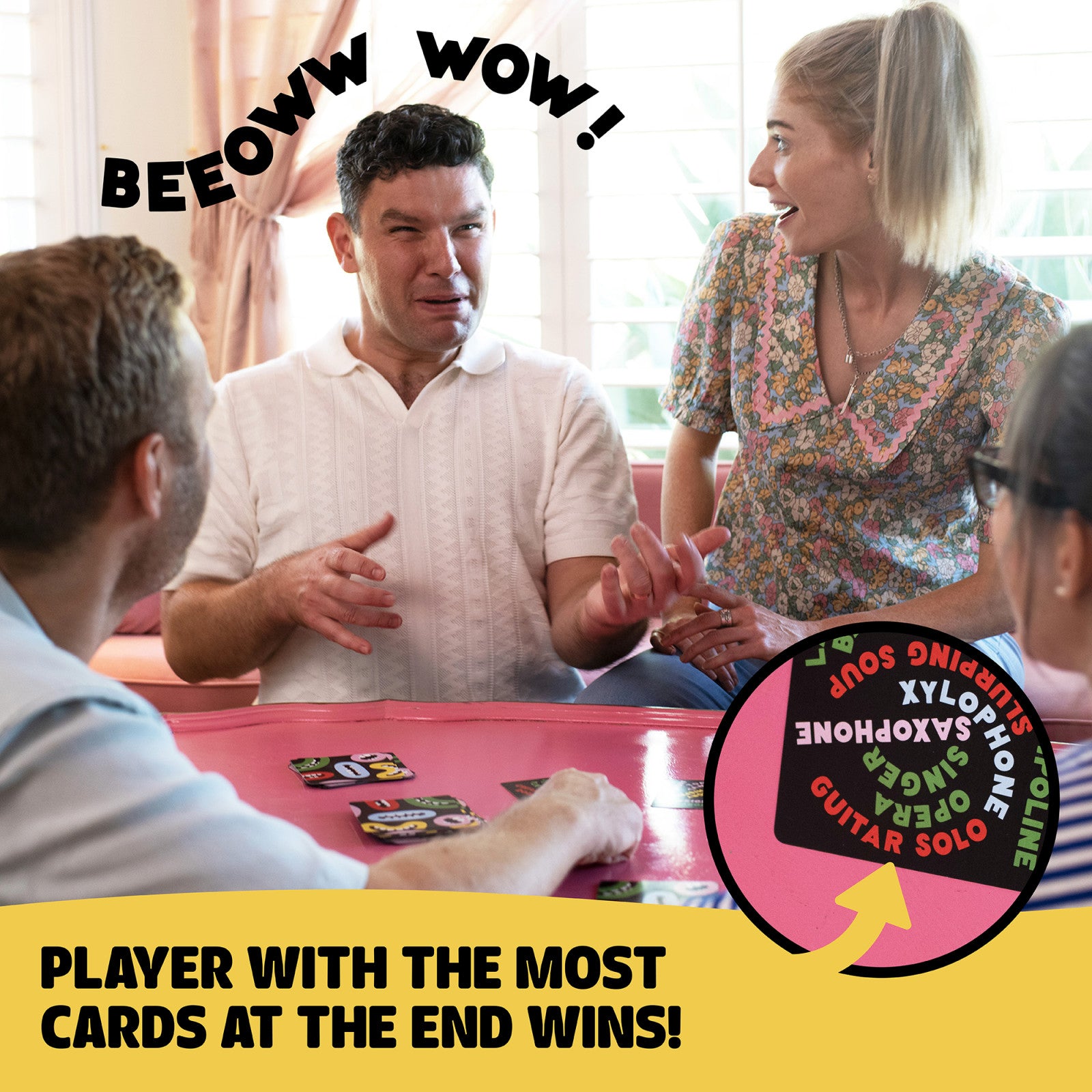Take any two cards, spot the only matching pair of words, and first to make the sound wins the cards.