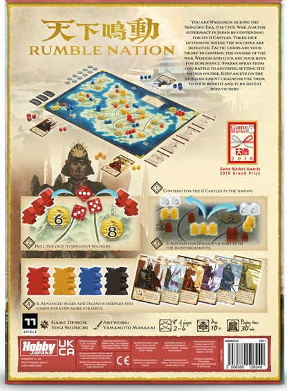 Warlords lead their clans to dominate Japan through the use of dice and domino logic.