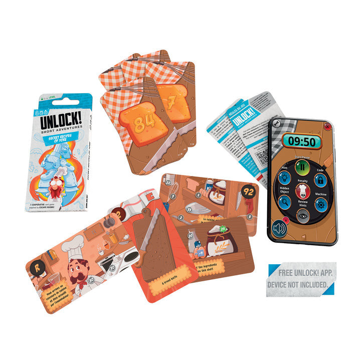 The free Unlock! companion app runs the timer while also providing clues, offering hints, and confirming successes. Once the team has reached a solution and entered the correct code into the app, they will escape and win the game!