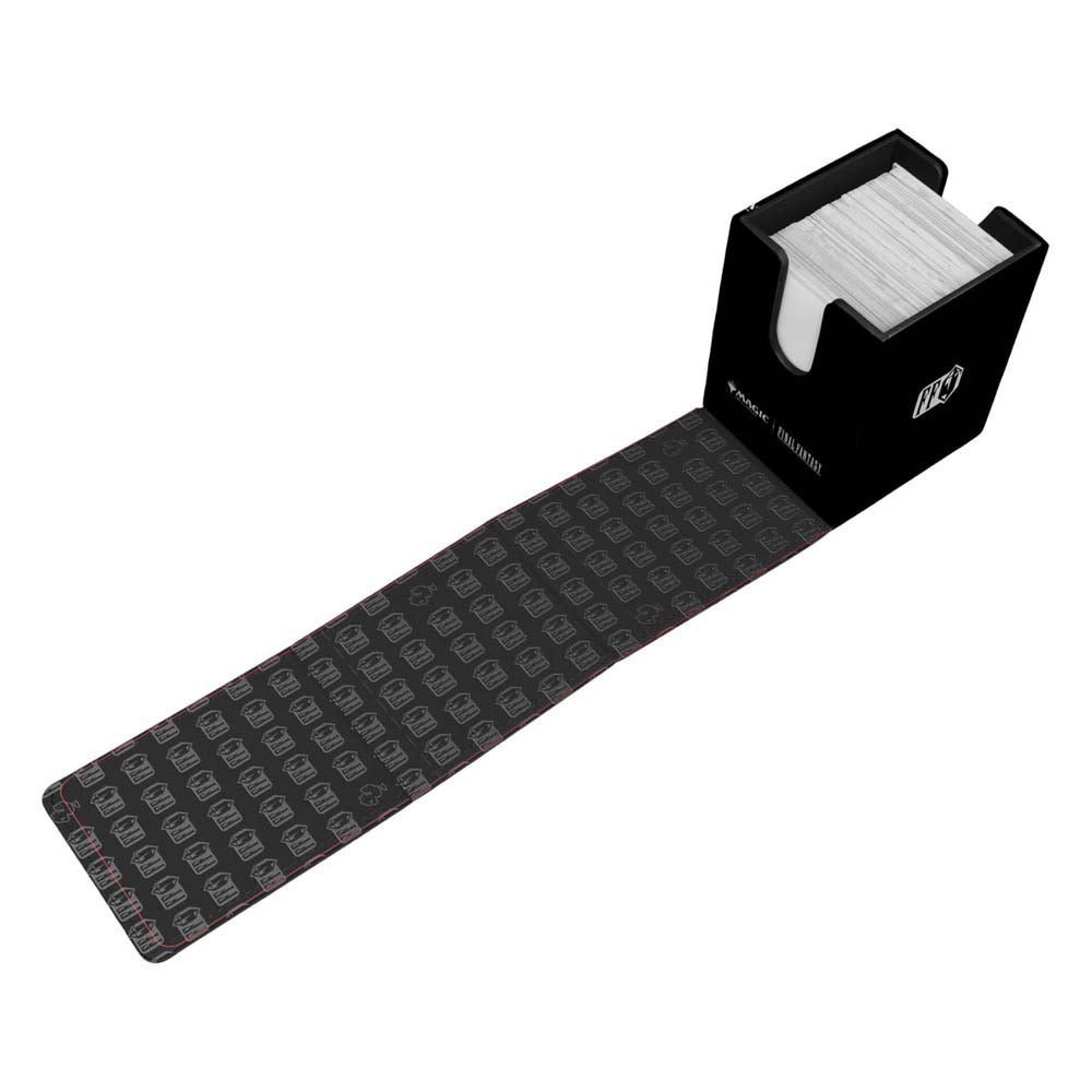 The MAGIC: THE GATHERING®–FINAL FANTASY(TM) Alcove® Flip Deck Box® features a vibrant, full-color leatherette finish, strong magnetic closure, and dual thumb notches for easy access to your deck. This Deck Box® holds up to 100 double-sleeved standard-size trading cards in Ultra PRO Deck Protector® sleeves.