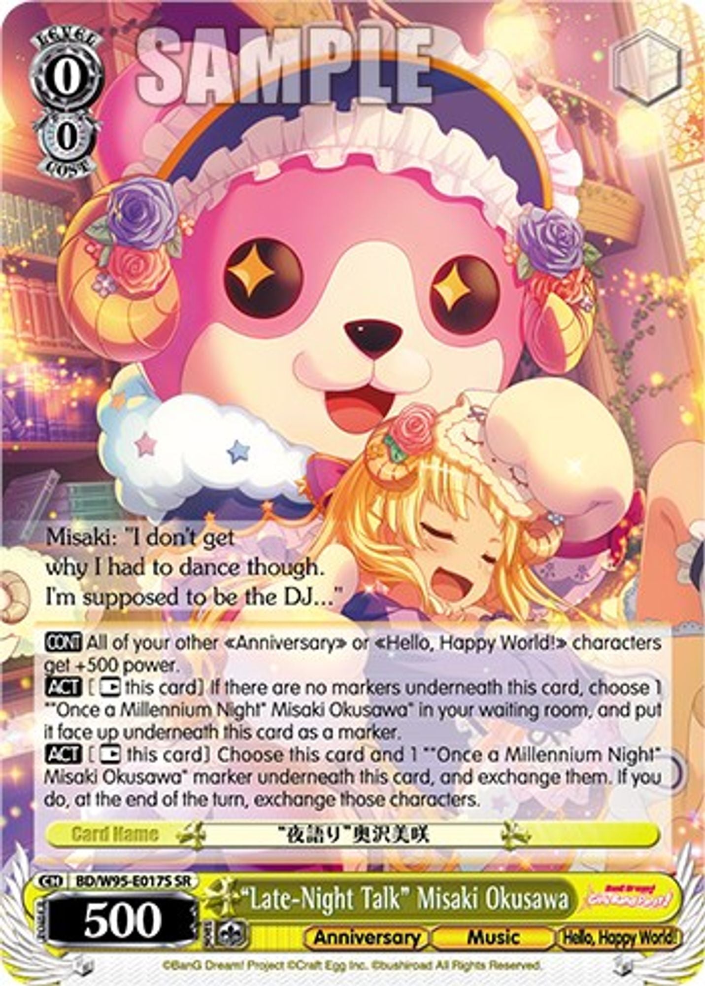 [ACT] [[REST] this card] If there are no markers underneath this card, choose 1 ""Once a Millennium Night" Misaki Okusawa" in your waiting room, and put it face up underneath this card as a marker.