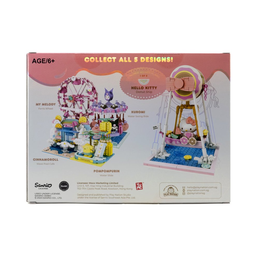 ♡ COLLECTIBLE ♡ Each Summer Wunderland building block set features one of 4 beloved Sanrio characters in a buildable design, perfect for display. Collect them all to create your own adorable water theme park and showcase your favorite characters.