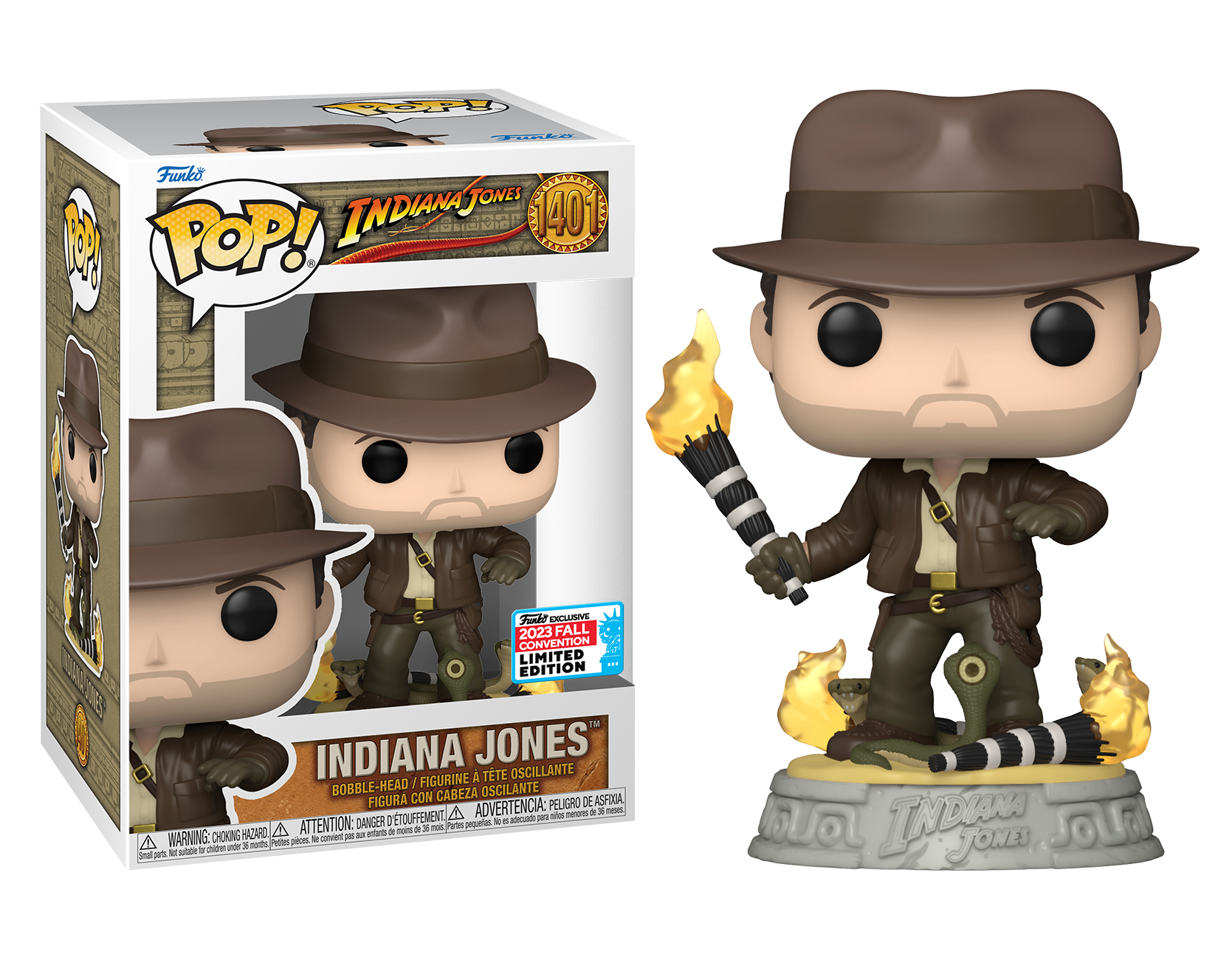 Introducing the Indiana Jones - Indiana Jones with Snakes NYCC 2023 Fall Convention Exclusive Pop! Vinyl, an adventurous addition for fans of the legendary archaeologist and his thrilling escapades. This limited-edition Pop! Vinyl captures the essence of Indiana Jones, complete with his iconic fedora and whip, as he navigates a treacherous pit of snakes. Standing at approximately 3.75 inches tall, this exclusive figurine pays homage to the timeless character and the unforgettable moments from the Indiana Jones franchise. Whether you're a devoted fan of the whip-cracking hero or a dedicated Pop! Vinyl collector, this NYCC 2023 exclusive is a daring and nostalgic addition to your collection. Don't miss your chance to own a piece of Indiana Jones lore – secure your Indiana Jones with Snakes Pop! Vinyl today before it disappears into the depths of history!