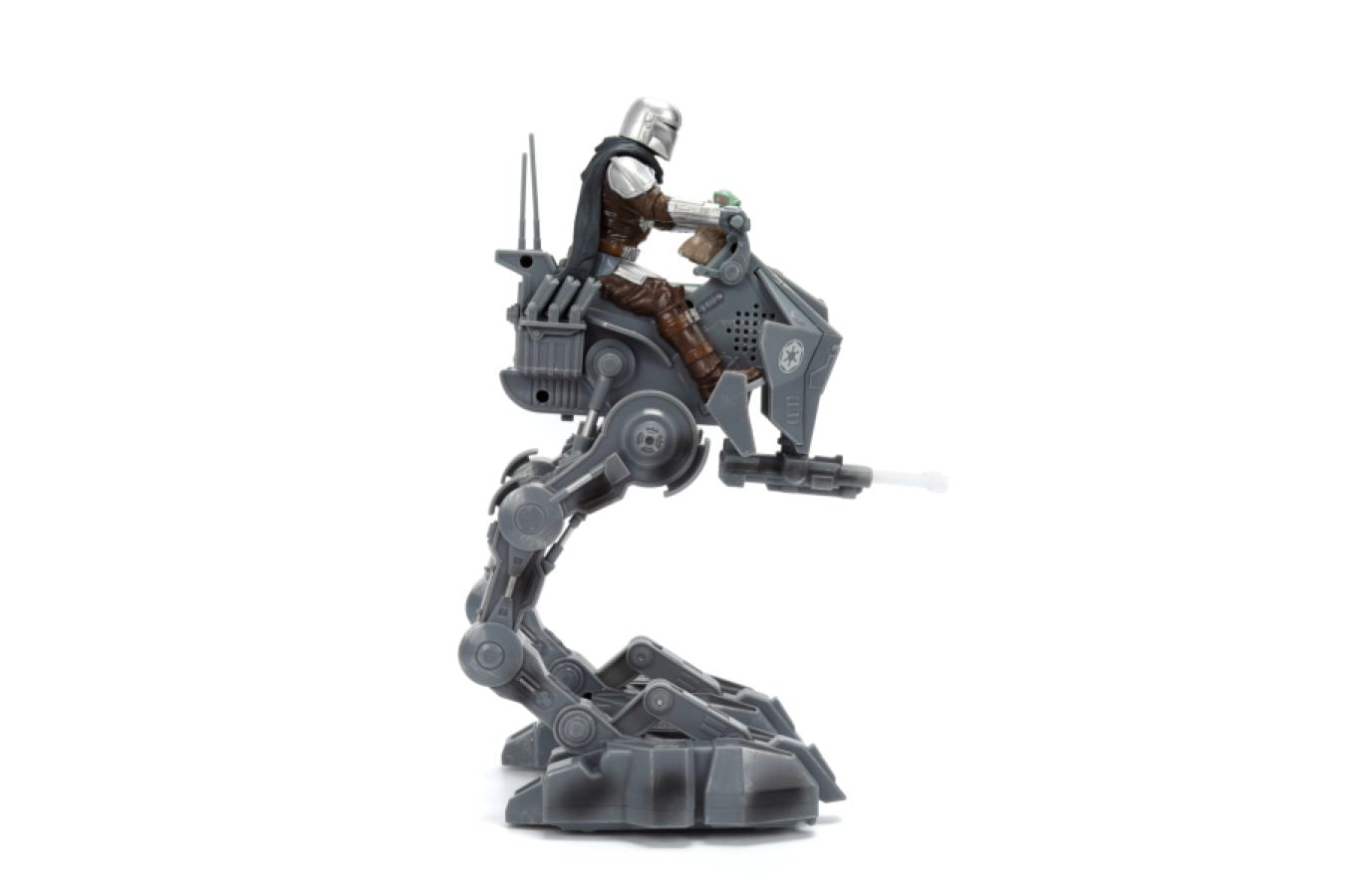 Bring cinematic action to life with the 13-inch RC AT-RT Imperial Remnant Walker. Controlled by a 2.4 GHz remote, this beast of a bot walks, runs, and turns while blasting iconic laser cannon sounds and movie-accurate audio. LED lights enhance the action, and the built-in Mandalorian figure holding Grogu adds the finishing touch for display or roleplay. Whether you're navigating Thunder Alley or defending your display shelf, this RC walker delivers excitement straight from the Star Wars universe. Add it to your fleet and control the action today.